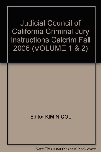 See all customer reviews...Judicial Council of California Criminal Jury Instructions Calcrim Fall 2006 (VOLUME 1 & 2), by Editor-KIM NICOL PDF